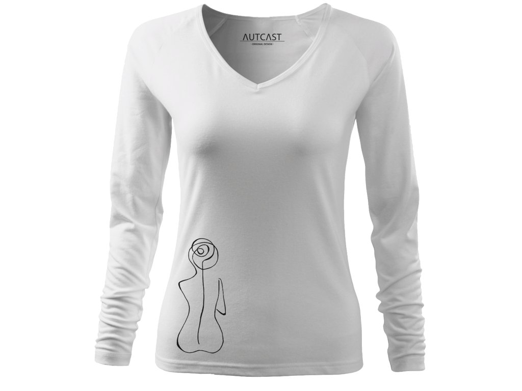 Strih: Strečový materiál udržujúci stálosť tvaru, výstrih v tvare "V", dlhé raglanové rukávy, priekrčník lemovaný povrchovým materiálom.