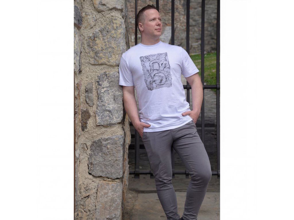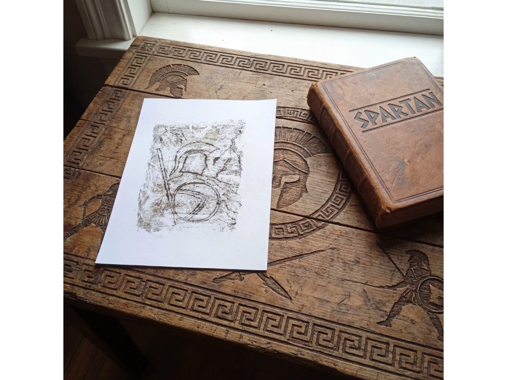 Monotyp stvárňuje sparťanského bojovníka s kopijou a prilbou. Obraz vytvoril Ivan Gabaj, študent Art & Design Institut v Prahe. Na našom tričku pôsobí, akoby vytesaný do kameňa. Vyjadruje odvahu, silu a mužnosť. Byť odvážnym v dnešnej dobe nie je vôbec jednoduché.