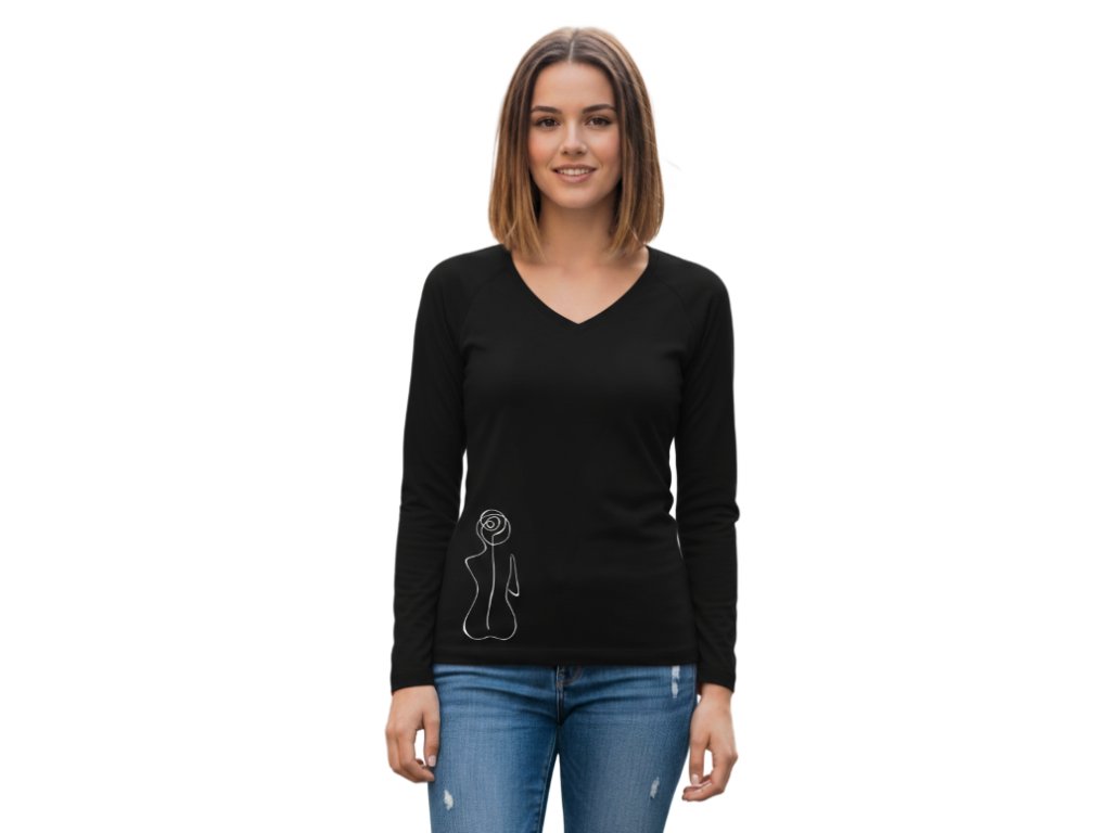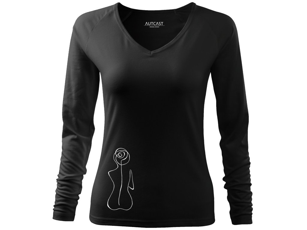 Strih: Strečový materiál udržujúci stálosť tvaru, výstrih v tvare "V", dlhé raglanové rukávy, priekrčník lemovaný povrchovým materiálom.