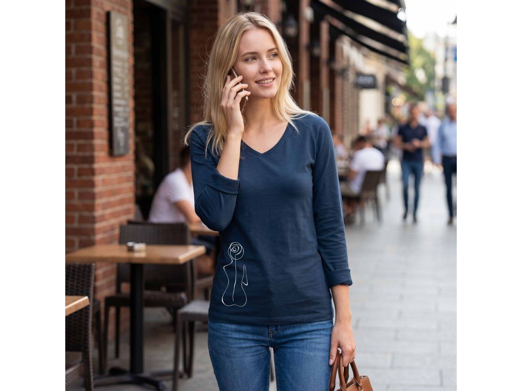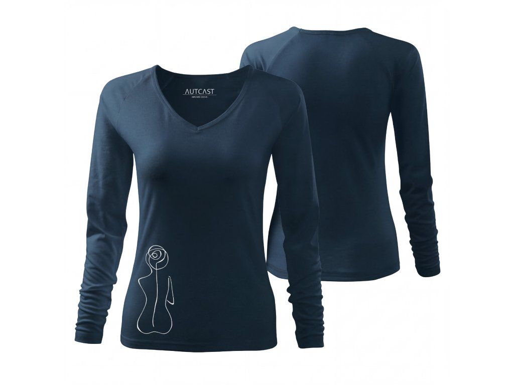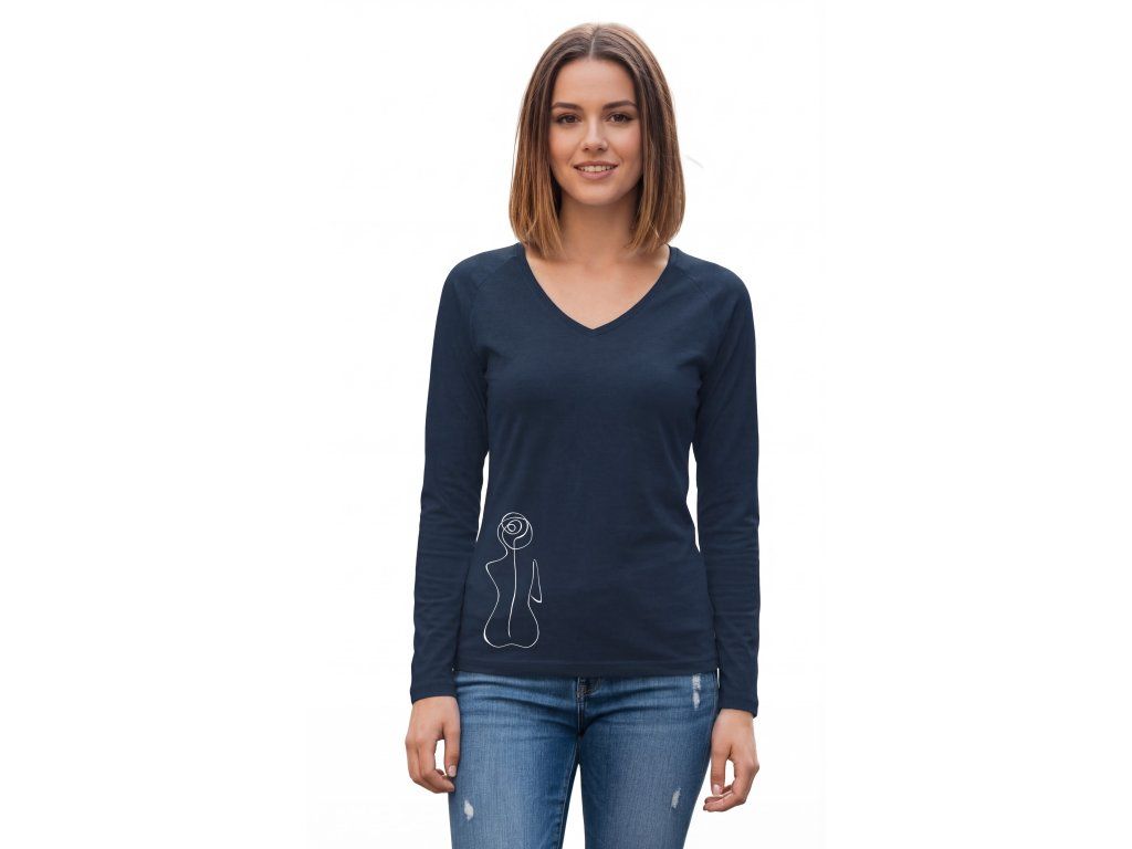 Strih: Strečový materiál udržujúci stálosť tvaru, výstrih v tvare "V", dlhé raglanové rukávy, priekrčník lemovaný povrchovým materiálom.