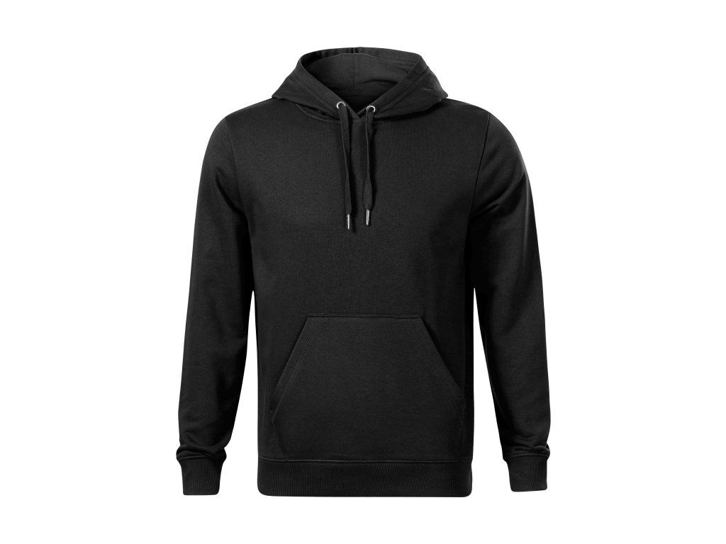 Strih: Rovný strih s bočnými švami, kapucňa s podšívkou, na stiahnutie šnúrkou, vrecko vpredu v štýle klokanky, dolný lem a manžety rukávov z rebrového úpletu 2:2 s 5 % elastanu.