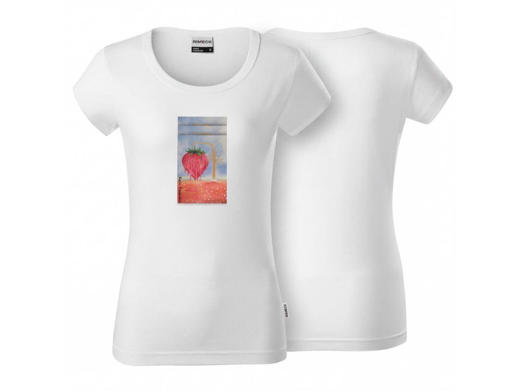 Produkt:Materiál: 100% predzrazená bavlna Single Jersey.Strih: Zľahka vypasovaný strih s bočnými švami a tvarovaný dolný okraj, vnútorná časť priekrčníka začistená žebrovým úpletom a spevnenie ramenných švov páskou, rukávy sú kratšej dĺžky.Gramáž: 160g /m2.Veľkosti: S-M-L-XLBalenie: 1 ks trička Jahoda Art, darček - štýlový handmade náramok, kupón na zľavu 10 % na ďalší nákup.